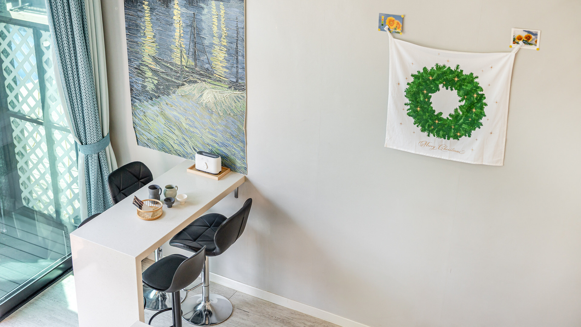 - 집기품목 : 욕실용품, 남녀공용, TV, 금연, 냉장고, 에어컨, 전기밥솥, 취사시설/도구, 식탁, 전자레인지, 커피포트, 인덕션, 드라이기, 샴푸, 린스, 바디워시, 비누, 치약, 타월, 산전망